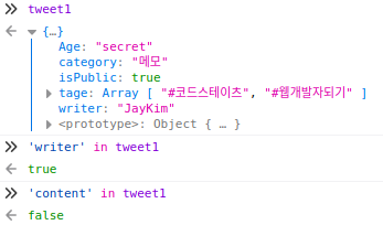 5. in 연산자로 해당키 존재여부 확인하기