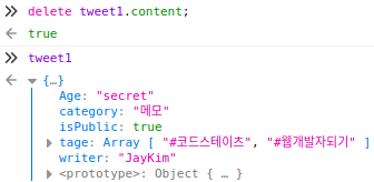 • 객체 속성 삭제를 위한 delete 키워드를 사용할 수 있다.