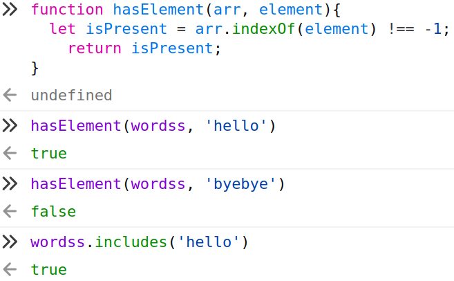 배열의 요소 포함 여부 함수 만들기