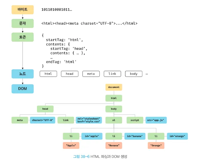 HTML 문서는 단순한 문자열이다. 브라우저가 이를 이해하려면 다음 단계를 거쳐 자료구조로 변환해야 한다.