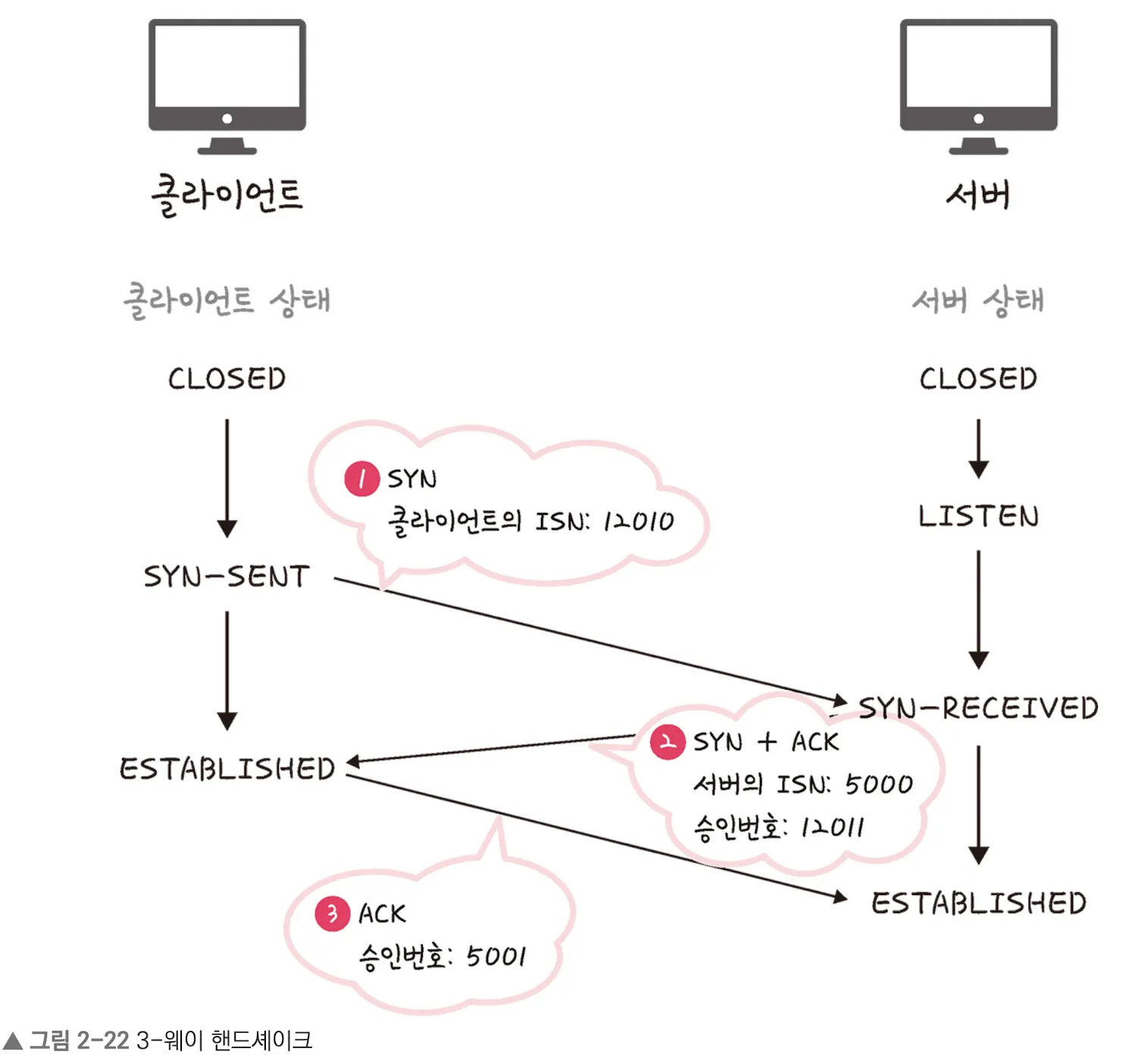 - 클라이언트는 서버에 클라이언트 ISN을 담아 SYN을 보낸다.