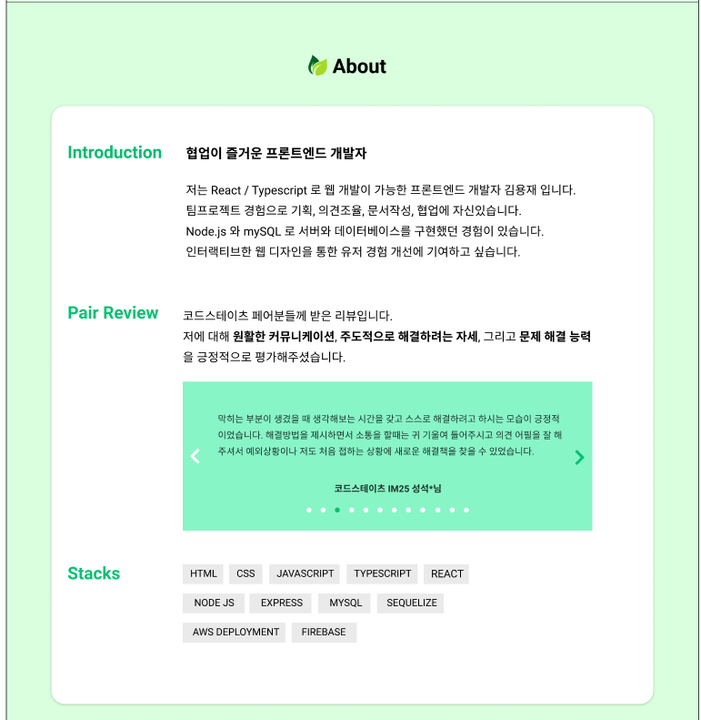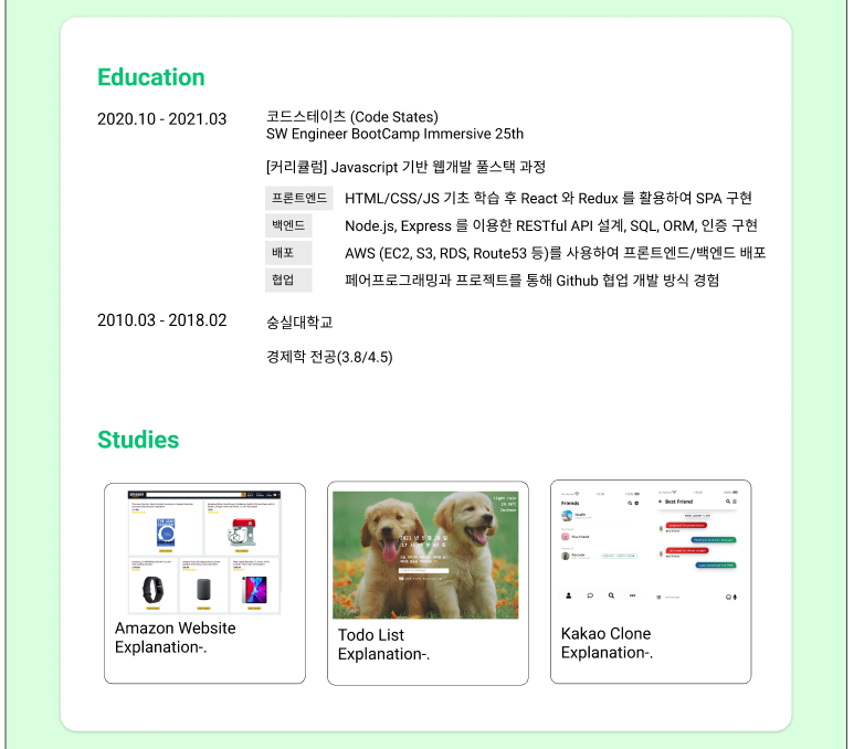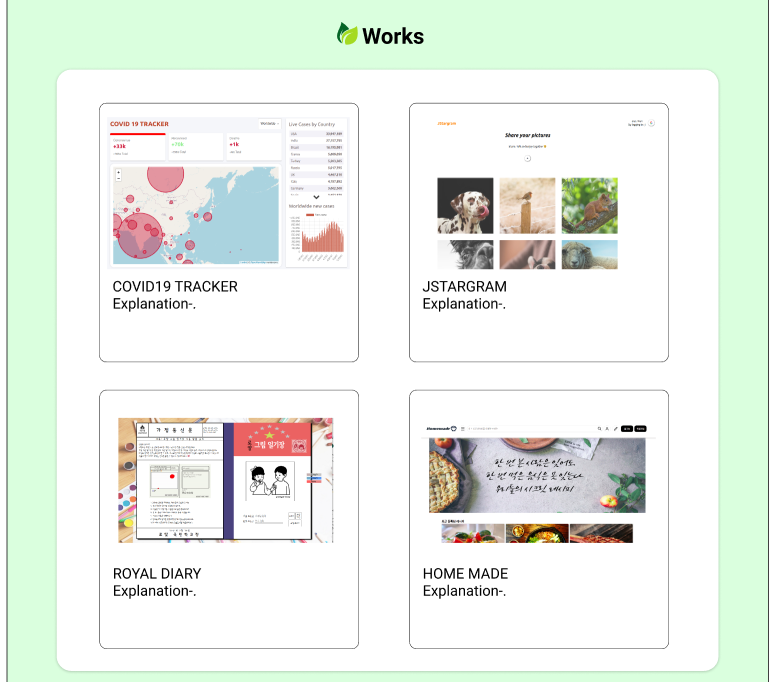- Single Page Website 로 React + Styled Component 조합으로 구현할 예정