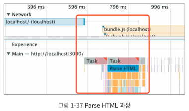 1. HTML 파일이 다운로드된 시점을 보면 메인 스레드에서는 Parse HTML이라는 작업을 하고 있습니다.