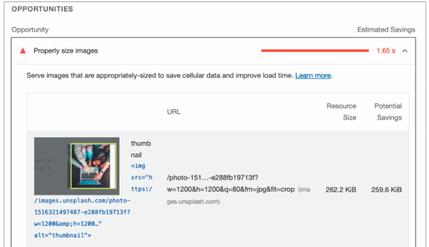 무엇보다 Opportunities 섹션에 더 이상 Properly size images 항목이 보이지 않습니다!