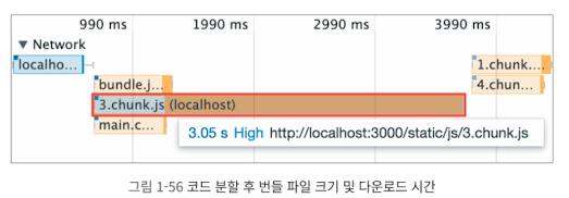 분할된 코드는 사용자가 서비스를 이용하는 중 해당 코드가 필요해지는 시점에 로드되어 실행됩니다. 이를 지연 로딩이라고 합니다.