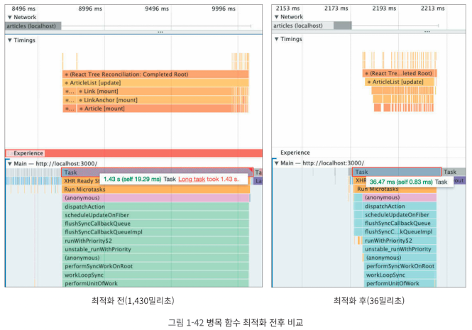 최적화 전에는 1.4초 걸렸던 작업이, 최적화 후에는 무려 36밀리초로 줄어든 것을 볼 수 있습니다.