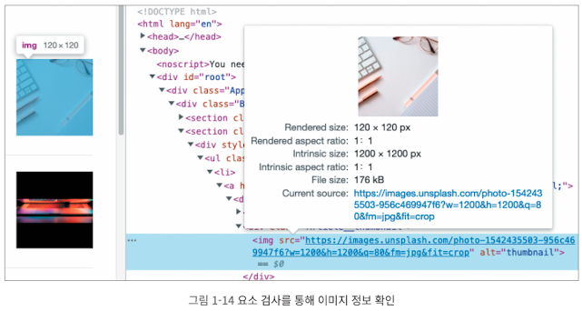 화면에 그려지는 이미지의 사이즈(Rendered size)는 120 x 120px이라고 합니다.