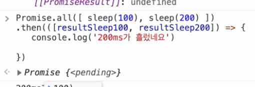 둘다 fulfilll (성공) 된 상태일 경우에 다음 .then이 불리고 아닐 경우 .catch 가 불려진다.