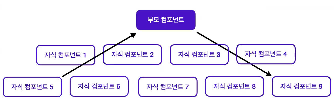 기존 component 간의 정보 공유. 상태 관리가 매우 복잡하다.