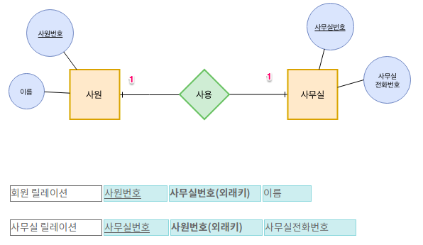 일반적인 1:1 관계는 *Foreign Key(외래키)를 서로 주고 받아 관계를 형성합니다.