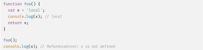 지역은 함수 몸체를 말하고 지역은 지역 스코프를 만든다고 했는데, 이는 코드 블록이 아닌 함수에 의해서만 지역 스코프가 생성된다는 의미다.