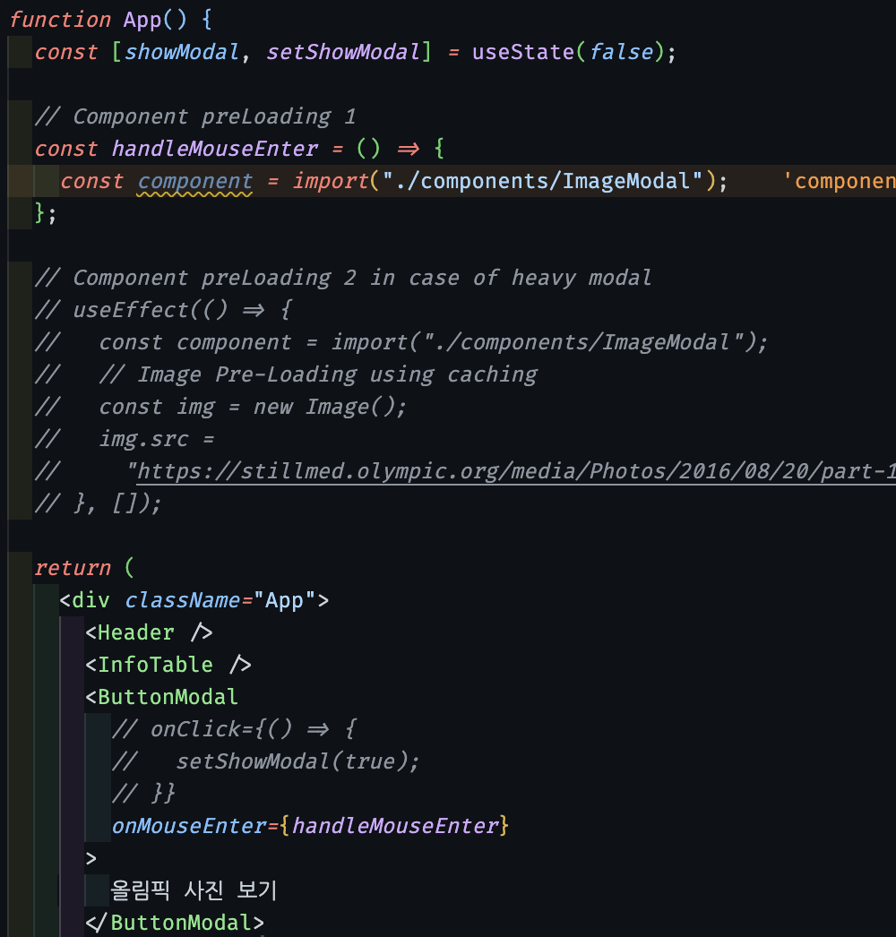 그리고 ImageModal이 로드되기 전에 발생하는 에러를 방지하기 위해,