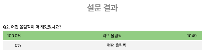 설문 항목을 클릭하면 해당 응답에 대해 필터링되고 막대 그래프의 배경 색과 막대의 가로 길이가 변합니다.