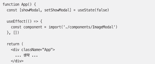 Suspence 컴포넌트로 LazyImage- Modal 컴포넌트를 감싸 줘야 합니다.