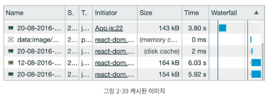 확인해 보면 사전 로드한 이미지의 Size 항목에 disk cache라고 적혀 있고, 다운로드 시간(Time)이 매우 짧은 것을 볼 수 있습니다.