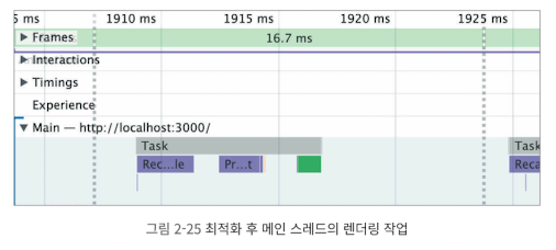 앞서 브라우저는 1초에 화면을 최대 60번 그린다고 했는데요. 화면을 그리는 시점이 바로 그림 2-18에서 점선으로 된 시점입니다.