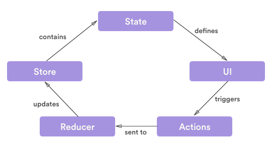 View -> Action -> Dispatcher -> Store(Middleware -> Reducer) -> View