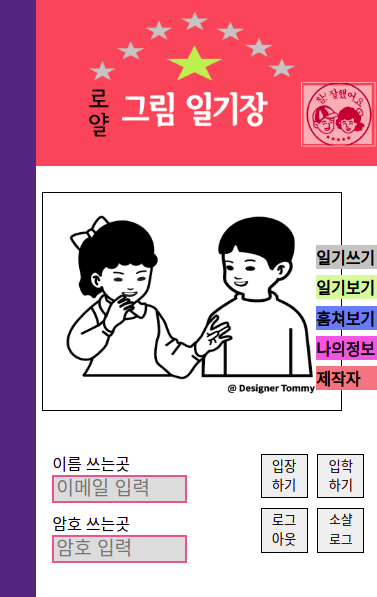 그림일기장 메인페이지(로그인페이지)에서 소샬 로그인 버튼이 제대로 나오지 않는 것과 클릭했을때 모달창의 위치가 잘못된 점.