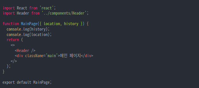라우트로 페이지를 선언하게 되면 기본적으로 가지고 있는 props가 있는데 그 중 가장 유용하게 사용되는 것이 바로 location과 history. 이를 활용하여 특정 페이지의 예외 처리를 한다거나 history 함수를 사용하여 페이지를 이동시킬 수 있습니다.