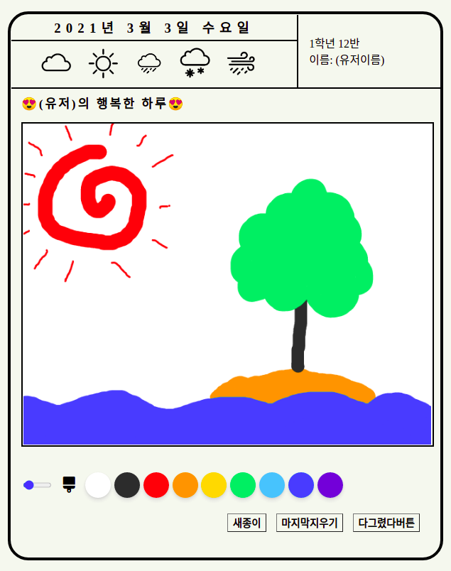 하지만 본인의 이미지를 수정할 때에는 react-canvas-draw method 인 loadSaveData(saveData: String, immediate: Boolean)를 이용하여 좌표데이터를 불러오기 때문에 그림이 그려지는 모든 과정을 직접 볼 수 있고, 마지막 지우기 버튼을 이용하여 마지막 획부터 차례대로 지워 나갈 수도 있을 것이다.