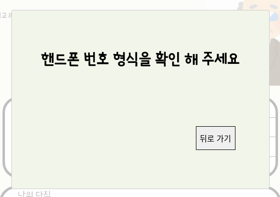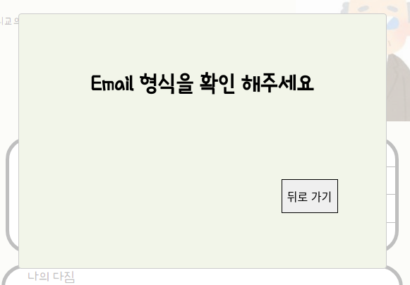 만약 하나라도 잘못된 부분이 있거나 누락된 경우, 아래와 같은 notification 모달창이 나오며 에러처리한다.
