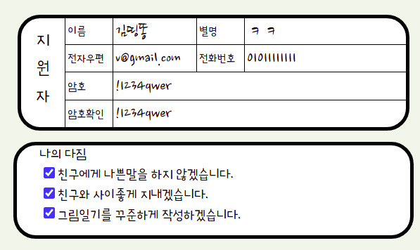 모든 기입 정보를 형식에 맞게 작성해야 회원가입이 가능하다.