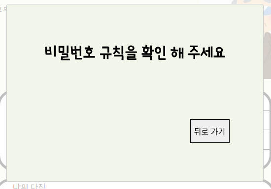 • 모달창이 너무 많이 뜬다. 중복되는 이메일/닉네임/휴대폰번호가 있을 경우에만 모달이 나타나도록 변경해야 한다. 그 이외의 기입 형식이 잘못된 경우는 말풍선 을 띄워 주의를 주는게 나을 것 같다.