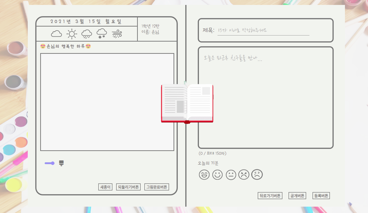 네비게이션 바를 통해 페이지 이동과 일기 작성 및 수정 시에 아래와 같이 로딩 이미지가 뜨도록 구현했다.
