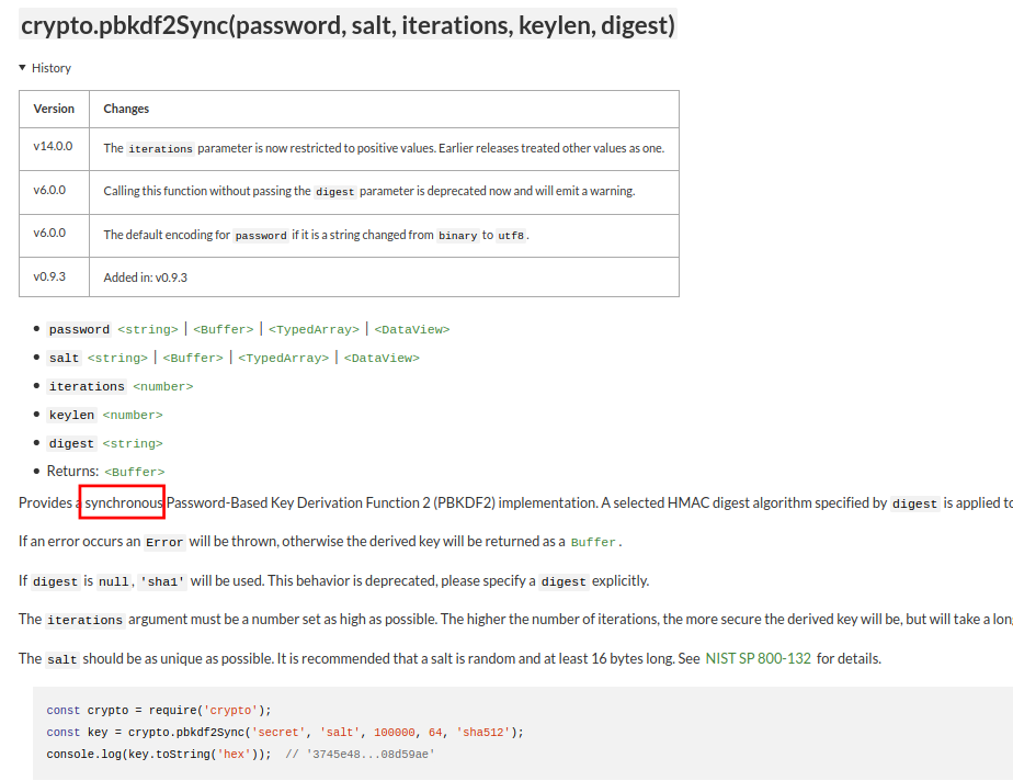 .pbkdf2Sync(password, process.env.DATABASE_SALT, 100000, 64, 'sha512')