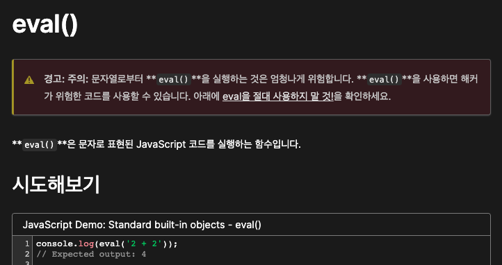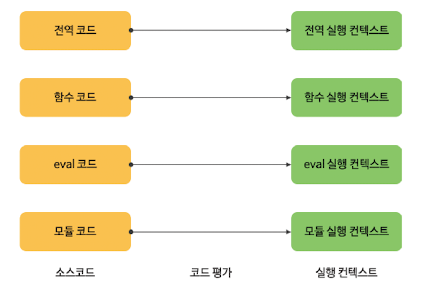 이를 위해 eval 코드가 평가되면 eval 실행 컨텍스트가 생성된다.