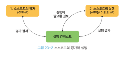 모든 소스코드는 실행에 앞서 평가 과정을 거치며 코드를 실행하기 위한 준비를 한다.