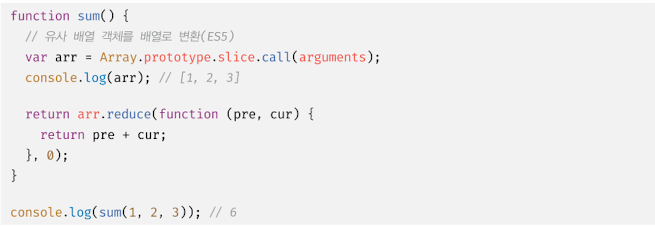 slice 메서드가 복사본을 생성하는 것을 이용하여 arguments, HTMLCollection, NodeList 같은 유사 배열 객체를 배열로 변환할 수 있다.