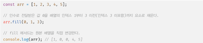 원본 배열(배열 메서드를 호출한 배열, 즉 배열 메서드의 구현체 내부에서 this가 가리키는 객체)을 직접 변경하는 메서드_mutator method
