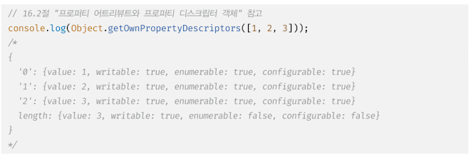 자바스크립트 배열의 요소는 사실 프로퍼티 값이다. 자바스크립트에서 사용할 수 있는 모든 값은 객체의 프로퍼티 값이 될 수 있으므로 어떤 타입의 값이라도 배열의 요소가 될 수 있다.