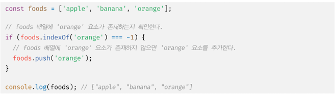 indexOf 메서드 대신 ES7에서 도입된 Array.prototype.includes 메서드 를 사용하면 가독성이 더 좋다.