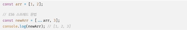 스프레드 문법을 사용하면 함수 호출 없이 표현식으로 마지막에 요소를 추가할 수 있으며 부수 효과도 없다.