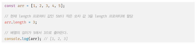 현재 length 프로퍼티 값보다 작은 숫자 값을 할당하면 배열의 길이가 줄어든다.