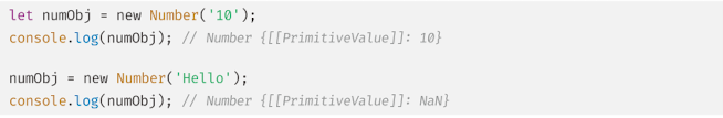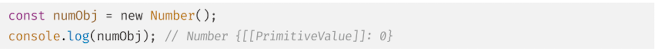 Number 생성자 함수에 인수를 전달하지 않고 new 연산자와 함께 호출하면 [[NumberData]] 내부 슬롯에 0을 할당한 Number 래퍼 객체를 생성한다.