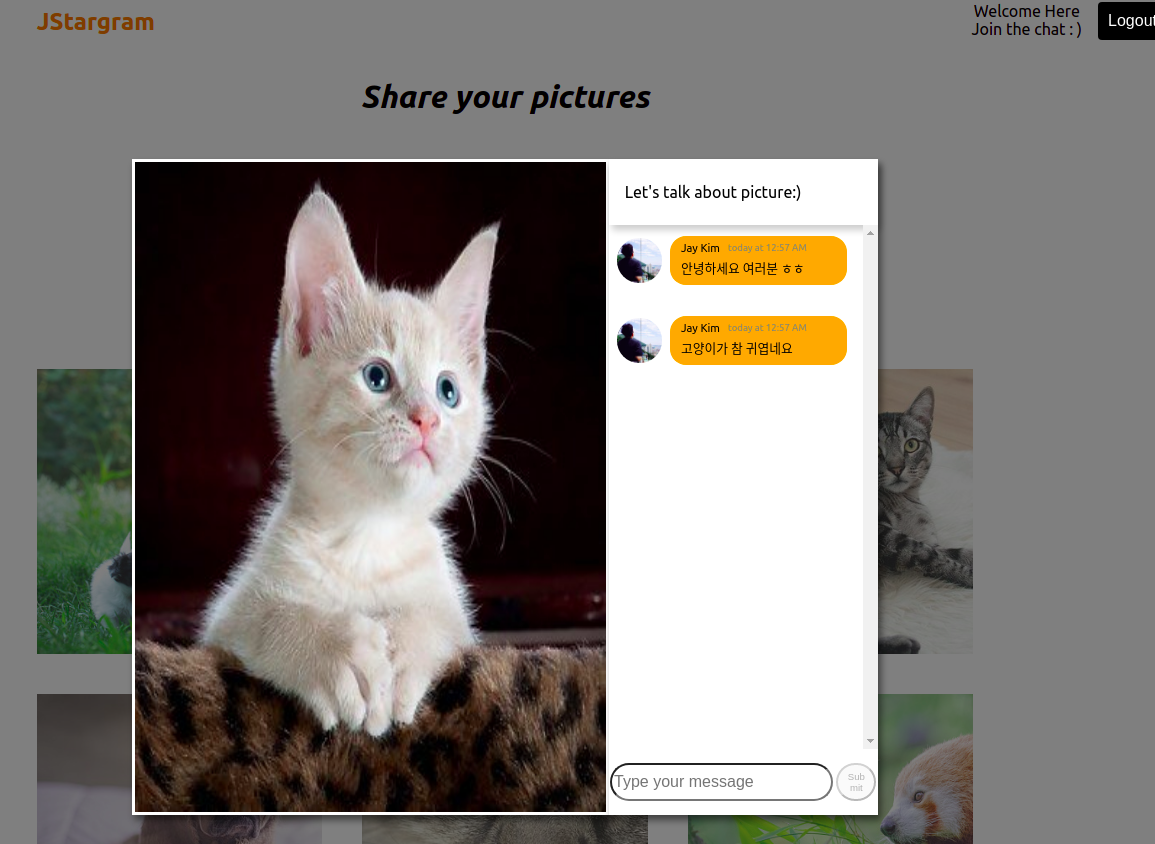- 사진에 대해 이야기를 나눌 수 있는 채팅 기능을 구현