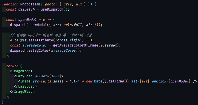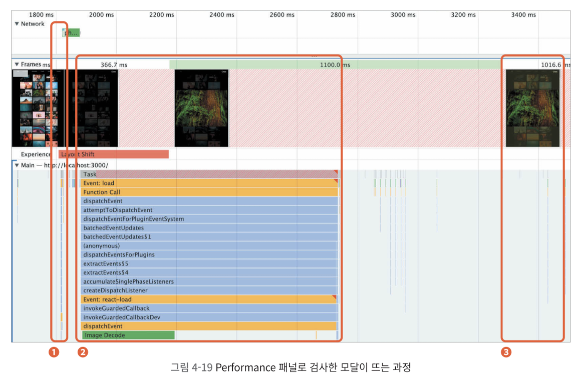 이미지를 클릭해서 이미지 모달을 띄웠을 때는 이미지도 늦게 뜨고 배경 색도 늦게 변하는 것을 볼 수 있습니다. 이미지가 늦게 뜨는 것은 이미지의 사이즈 때문에 어쩔 수 없겠지만, 배경 색이 늦게 뜨는 원인은 살펴볼 필요가 있겠습니다.