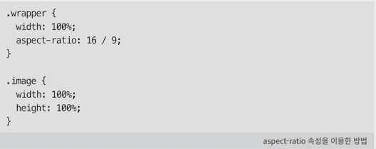 aspect-ratio 속성도 브라우저의 일부 버전에서는 지원하지 않을 수 있어서 호환성을 잘 체크한 후 적용해야 합니다.
