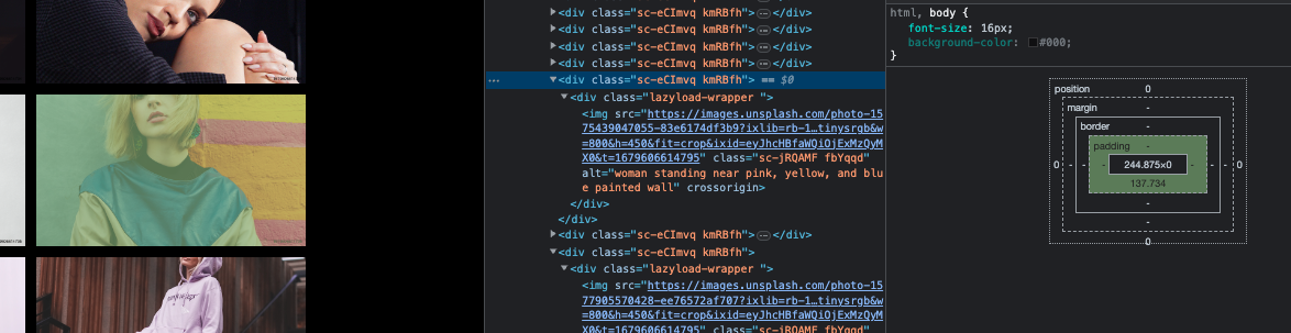 이미지 갤러리 서비스에서는 이 네 가지 중 사이즈가 미리 정의되지 않은 이미지 요소 때문에 레이아웃 이동이 발생했습니다.