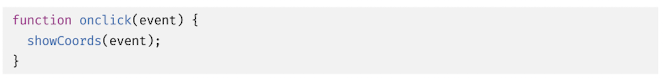 위 onclick="showCoords(event)" 어트리뷰트는 파싱되어 다음과 같은 함수를 암묵적으로 생성하여 onclick 이벤트 핸들러 프로퍼티에 할당한다.