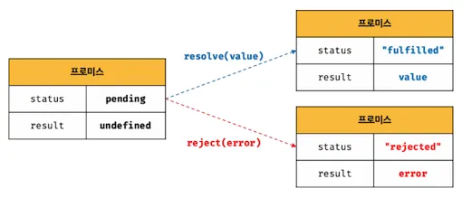 그리고 프로미스의 상태는 resolve 또는 reject 함수를 호출하는 것으로 결정된다.