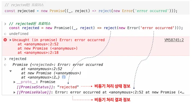 - 이때 콜백 함수는 프로미스의 에러를 인수로 전달받는다.