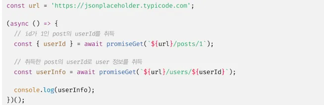 이 문제는 ES8에서 도입된 async/await를 통해 해결할 수 있다.