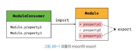 자신만의 파일 스코프를 갖는 모듈의 자산(모듈에 포함되어 있는 변수, 함수, 객체 등)은 기본적으로 비공개 상태다. 다시 말해, 자신만의 파일 스코프를 갖는 모듈의 모든 자산은 캡슐화되어 다른 모듈에서 접근할 수 없다.