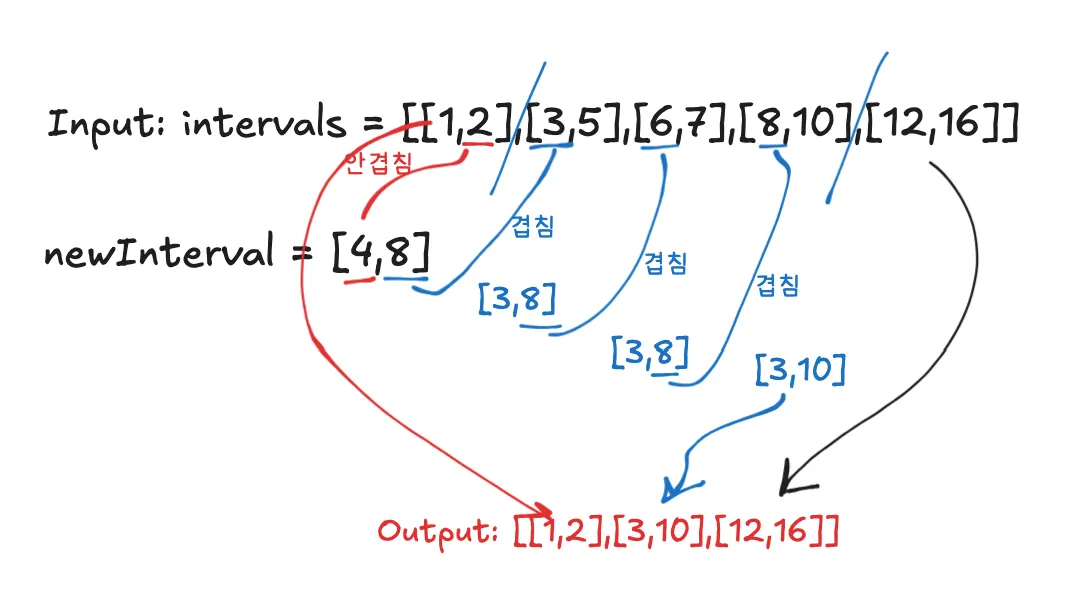 1. newInterval보다 앞쪽에 겹치지 않는 구간 → 그대로 결과에 push