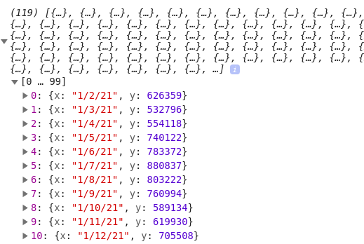 5) 가공된 결과인 좌표데이터를 차트 라이브러리(react-chartjs-2) 의 Bar 엘리먼트에 데이터로 전달