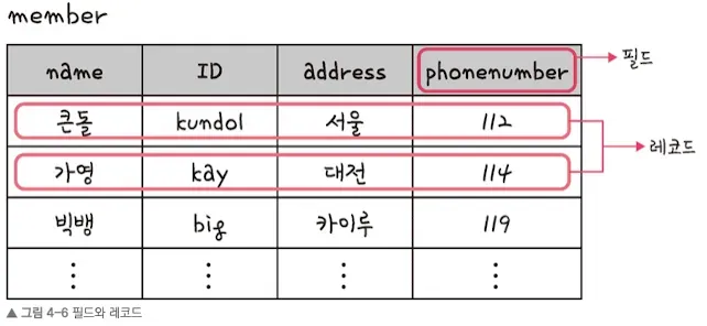 - Each row (record_레코드 or tuple) in the table represents a single member’s data